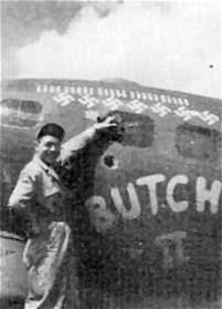 This aircraft is listed as being flown from Harvard to Rattlesden in November 1943. Butch II led the group's first two missions on December 24 and 30, with Col. Hunter Harris at the controls. It remained with the group until written off after a crash landing on April 20, 1945. However, some records indicate this aircraft was originally with the 401st Bomb Group at Deenethorpe, and transferred to the 447th shortly after the group's arrival at Rattlesden, possibly as a replacement for 42-37865, lost over the Atlantic on November 27, 1943.
