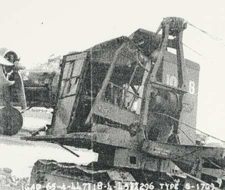 At 6:00 PM on April 18, 1945, Crew Chief M/Sgt Jack Berry was taxiing Royal Flush from the hangar area to its hardstand along the perimeter track.  By the time Berry noticed a crane parked on the side of the track, it was too late to stop.