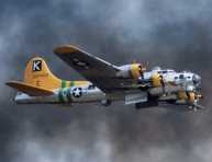Fuddy Duddy No. 42-97400, a B-17G-45-BO, was built in Boeing’s Seattle plant and delivered to the USAAF on 26 February 1944, and ferried to England in early April. It was assigned to the 708th Squadron on April 7, and began flying combat missions before the month ended. |