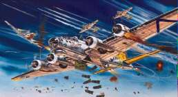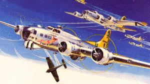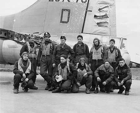 The Mustaleski crew was on our right wing on the mission to Kiel. I was watching them just as they got hit by an 88 on the tip of the left horizontal stabilizer. It was blown completely off, and left the vertical rudder looking like a sieve. The tail gunner was hunched down, apparently doing something with his guns, just as they were hit. He sat up bolt upright with his head swiveling left and right for a moment, and when he saw the aircraft was still flying in formation he relaxed back in his seat and stayed there. The aircraft's tail dropped somewhat lower when it lost half its tail, but kept on flying. The pilot (Mustaleski) had to start essing, in order to stay with the group, as (I presume) his airspeed had to be increased. He went over the target with us, dropped his bombs, and came all the way home to Rattlesden. I understand he was awarded the DFC for that piece of flying. |