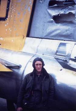 Tail gunner Clarence Jackson, uninjured, but a close call.