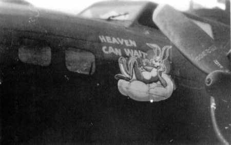 L "Heaven Can Wait" 711th BS Photo between Dec. 31 1943 and March 22, 1944 Flew five combat missions, last being March 22. Written off on April 13, 1944 and salvaged due to battle damage. See Aircraft