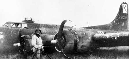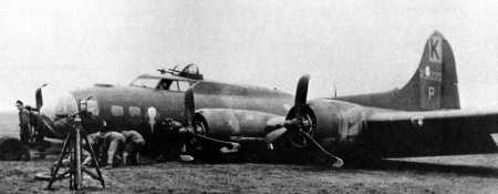 L "Big Stoop" 708th BS Photo April 1944 on Bornholm Is., Denmark after crash landing on April 11. Photo from usairmen.com See Aircraft Profile |