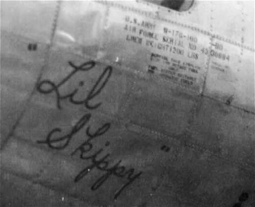 A "Li'l Skippy" 708th BS Photo between November '44 and February '45 Scrapped at Kingman, Arizona in 1946.