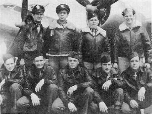 710 Sq. Standing, L-R: Lt. Herbert McNabb, B Lt. Beverly Hoffman, P Lt. John D. Wells, N Sgt, Melvin Ragsdale, TG Front, L-R: Sgt. Earlie Presson, WG Sgt. Harold O. Kiena, ROG Sgt. Robert Longwitz, ENG Sgt. Francis Lynam, BTG Not pictured: Lt. Wm. North, CP