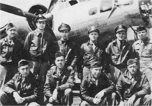 711th Standing, L-R: Ernst "Bob" Rohde, P Alan S. Cook, CP Gordon F. Serrott, B John D. Stockham, N Kneeling, L-R: Leonard C. Smith, TG Frank J. Wisniewski, BTG John P. Biscardi, WG Walter J. Hemhauser, ENG George W. Schwegel, ROG Identified in Spring 2002 447thBG Newsletter, p. 6 |