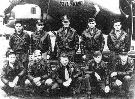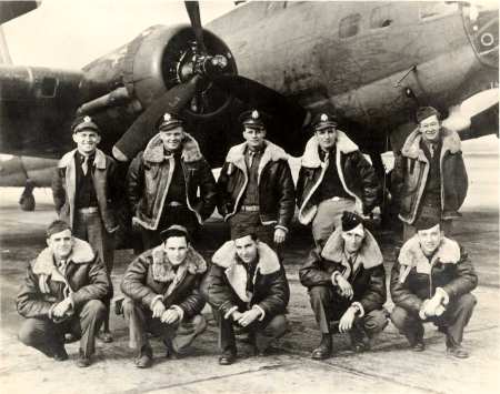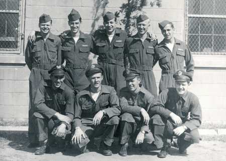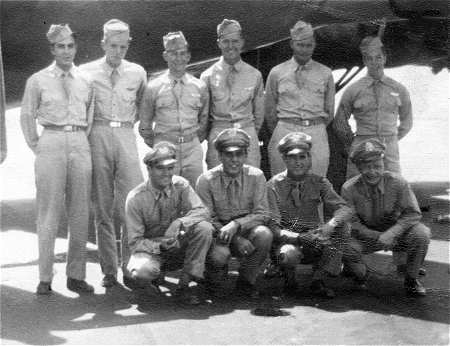 Buthe crew, 708th Drew Field, FL, Sep 44 Standing, L-R: Sgt John M. Flynn Sgt Anthony R. Demarco Sgt Charles R. Agnatovich Sgt Douglas Aldrich Sgt John W. Lafferty, Jr. Sgt Ralph B. Corning Kneeling, L-R: Lt Charles O. Norris Lt Raymond H. Buthe Lt Marvin L. Brawer Lt Curtis G. Chapman Crew Profiles- Buthe |