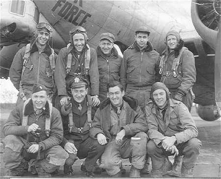 Warren Bates crew, 709th Rattlesden, undated Standing L-R: Sgt Harry Doung Sgt Daniel De Tullio Lt John H. Bauman Sgt William Sonneborn Sgt Claude Cluck Kneeling L-R: Lt Warren F. Bates Lt Luther "Ike" Eisenhart Sgt Robert Vogt Ground crew not included: Sgt William Rhoades Sgt Beth Liss |
