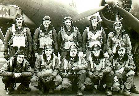 Hampton crew, 710th Drew Field, Florida, Fall 1944 (As assigned Dec 28, 1944) Lt. Milton C. Hampton Lt. Robert E. Johnson F/O Kenneth M. Wells Lt. Leonard T. Johnson Cpl. Raymond J. Hasenau Cpl. Charles E. Lower Cpl. Paul Stanik Cpl. Abraham B. Lobel (standing, far right) Cpl Arthur J. Schuppel |