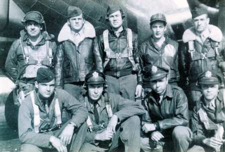 Gillespie crew, 708th Rattlesden, undated Assigned SO308, 28 Dec 1944 Standing L-R: Cpl. Paul H. Jones Cpl. Raliegh M. Martin Cpl. Blaize J. Napolitan Cpl. Richard O. Lawrence Cpl. Francis B. Froah Kneeling L-R Lt. Joseph Nidich Lt. Lee A. Small Lt. Richard T. Gillespie Lt. Robert J. Beiting F/O Milton A. Trodick Crew Profiles- Gillespie |