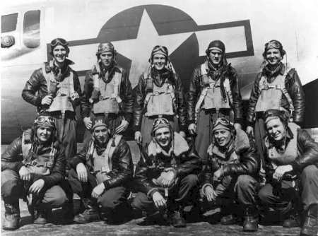 Guynn crew, 710th Rattlesden, undated Original crew (Nov 1943) Standing, L-R: Lt Reed Hollister Lt Bernard Hadler Lt Richard Bender Lt Ashley Guynn Sgt John Thomas Kneeling, L-R: Sgt Edward Kucinski Sgt Charles Mauser Sgt Bernard Weis Sgt Ernest Hernandez Sgt George Swingle |