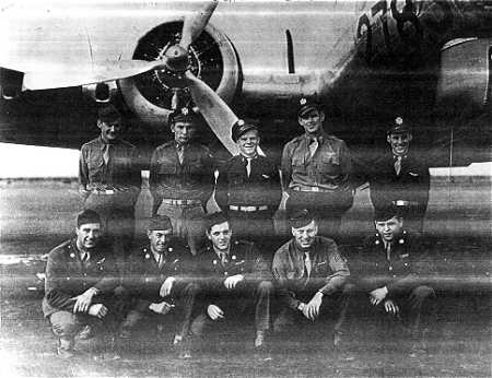 Gormly crew, 709th Rattlesden, undated Assigned SO118, 18 May 1944 Standing, L-R: Lt. Harry A. Theurer Lt. Gerald R. Hugunin Lt. Robert P. Gormley Lt. William F. Phillips Sgt John J. Fernsler Kneeling, L-R: Sgt. James L. Welch Sgt Everette A. Stamper Sgt James E. Nairn Sgt Myron C. Anderson Sgt Robert C. Walters |