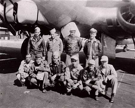 Hoffman crew, 710th Rattlesden, undated Standing, L-R: unknown Sgt. Paul Lynam Lt Herbert McNabb Lt Beverly Hoffman Lt John D. Wells Sgt Melvin Ragsdale Kneeling, L-R: unknown Sgt. Robert Longwitz Sgt. Harold O. Kiena Sgt. Earlie Presson Not pictured: Lt. William North Crew Profile- Hoffman Combat Diary- Lt. Herbert McNabb |