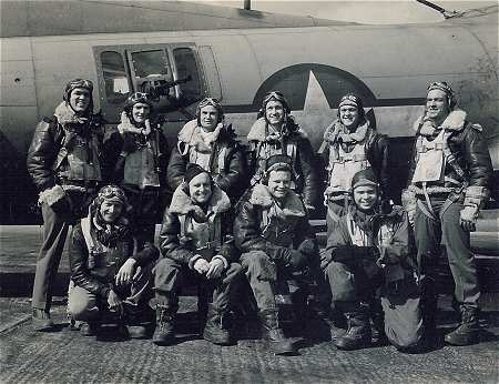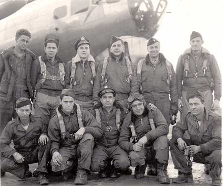 Hicks crew, 709th Rattlesden, undated Standing, L-R Lt Vernon Mills Lt William Lindberg, Lt Irving Fisher Lt Kenneth Hicks Kneeling, L-R: Sgt Aubrey Holst Sgt LaVerno Angst Sgt Joseph Shal Sgt Loren Ehlers Sgt Howard Launstein |