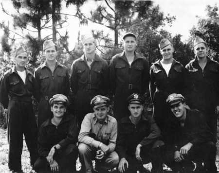 Houseknecht crew, 709th Drew Field, FL, Identifications pending Front row, L-R: Lt Edward J. Flak Lt William K. Houseknecht Lt ________ Johnson Lt ________ Davis |
