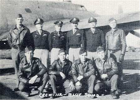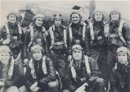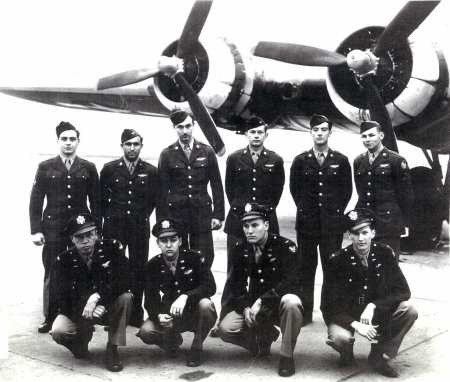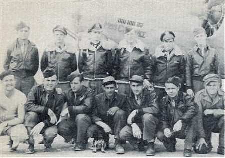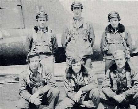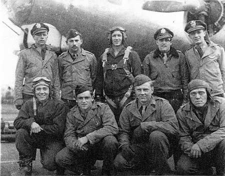 711th Rattlesden, June 1944 Standing, L-R: Sgt Dale Menzel Lt Roland Mitchell Lt Roderick Moe Lt James Liakos Lt William McRoberts Sgt Jack Heath Kneeling, L-R: Sgt Eric Holmes Sgt Dale Stillwell Sgt Reynolds Perez Sgt James Casey |
