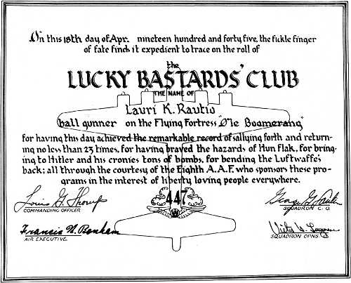 ![]() | 447th Bomb Group USAAF Station 126 - Rattlesden Combat Diary: S/Sgt Lauri K. Rautio |