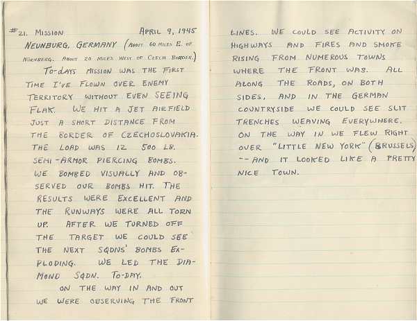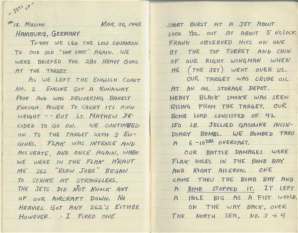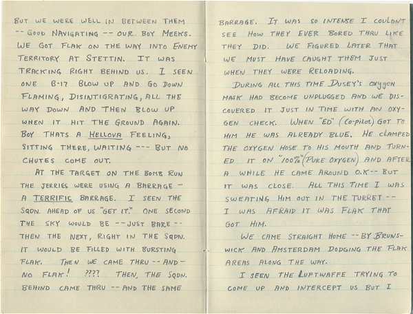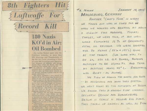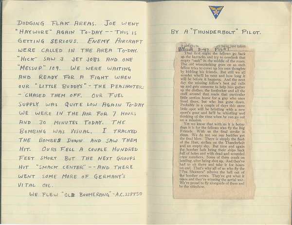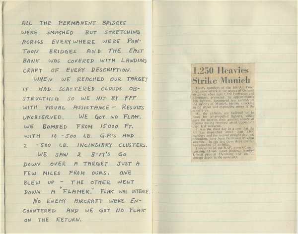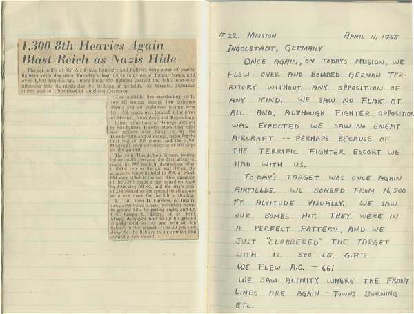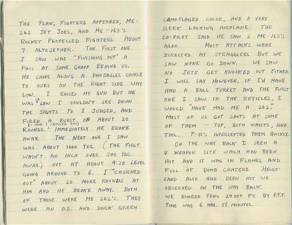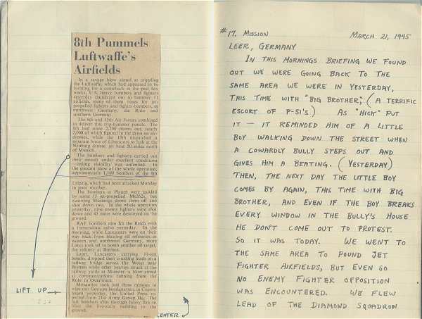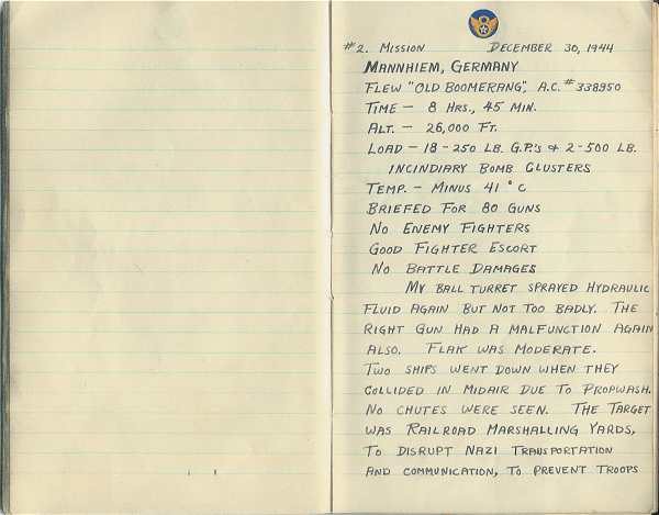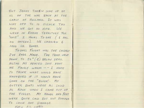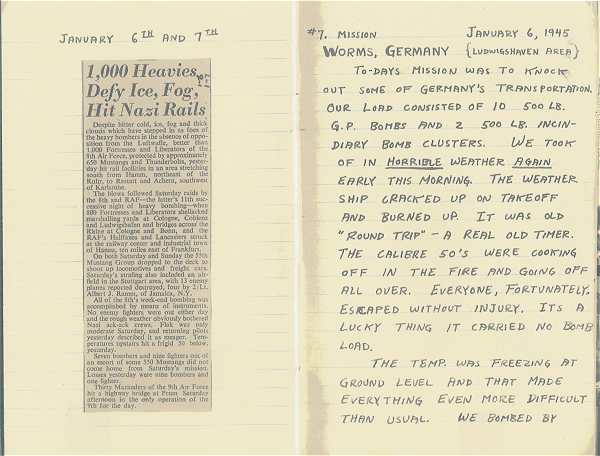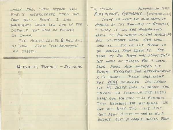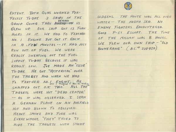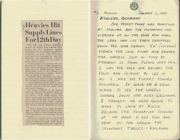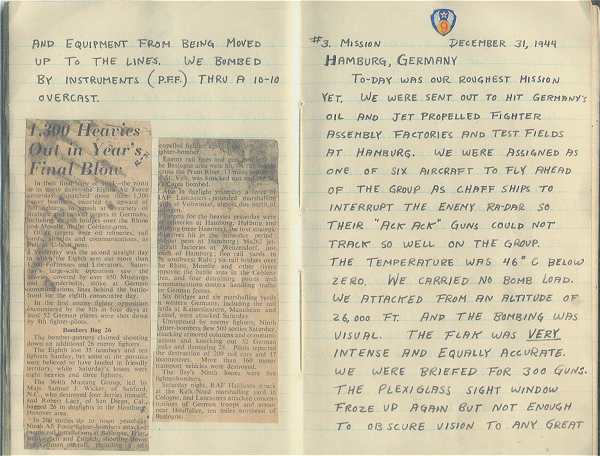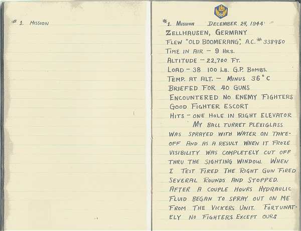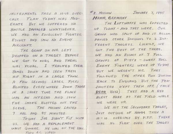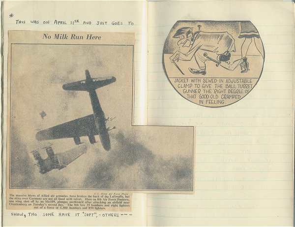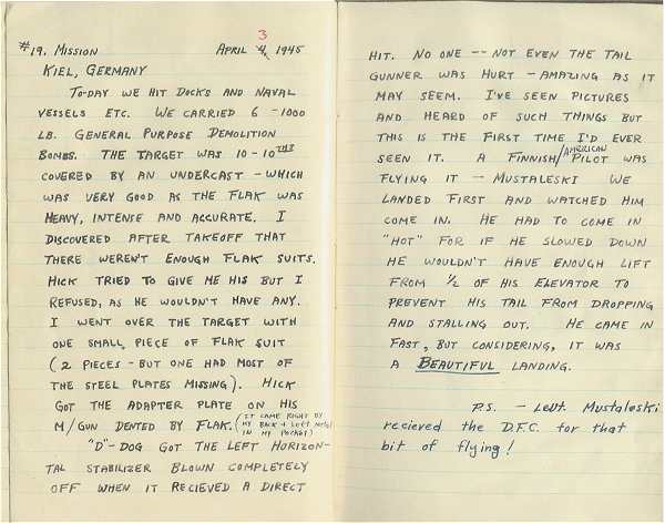 | Lauri Rautio of the Mayhew crew (708th) has provided the following Combat Flight Log. It is one of the most explicit and expressive documents in our collection, and describes many aspects not otherwise covered in available materials. |
