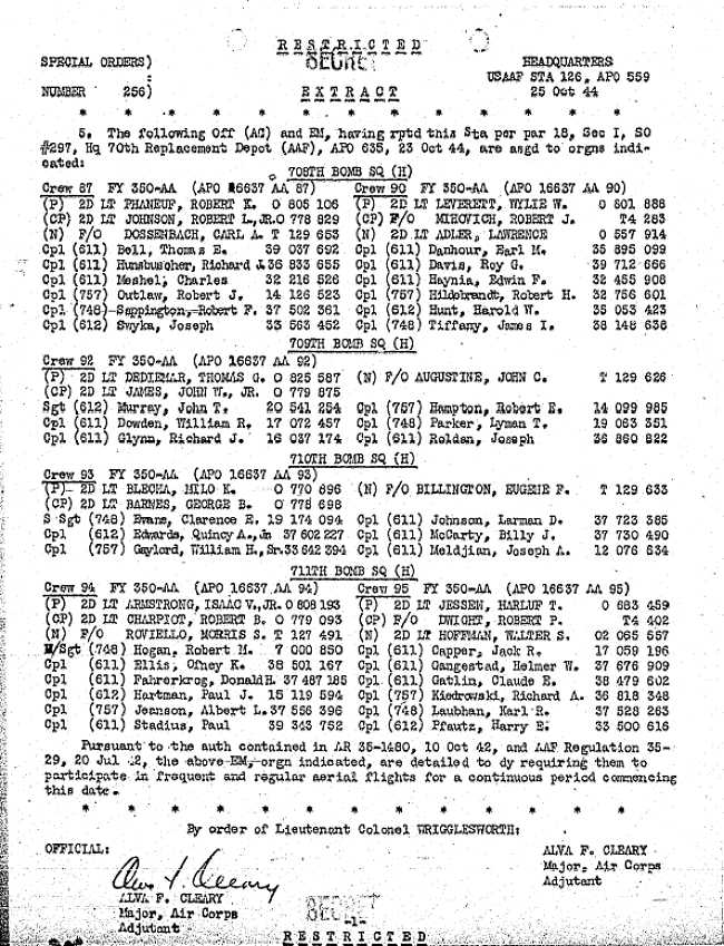 The Phaneuf crew before deployment September 1944 Standing, L-R: Kneeling, L-R: |