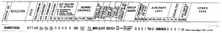 In 1944 I wrote the description, quoted below of this ugly looking B-17, perhaps the last of its kind to be delivered to our Rattlesden airbase. For a time we weren't even sure it was a B-17G; we thought it might be a beat-up F model dressed up to look like a G. "Only one B-17G Flying Fortress ever had the misfortune to have the stately name, ‘Umbriago’ painted on its shiny Alcoa surface; only that surface was hardly shiny; it was a dirty camouflage burnt umber color, and at present, (1945), it rests in peace with the remainder of its skin, plus small quantities of its flesh, on a forward RAF airstrip at Eindhoven, Holland. That particular airplane was a misfit and a mongrel from the day of her origin. (I don't think the 447th had any but shiny aluminum craft in the fall of 1944; our ship was apparently a throw-back to the days when B-17s were loaded with the useless extra weight of a couple of hundred pounds of camouflage paint.) Umbriago suffered the doubtful privilege of participating in just one combat mission over Germany a: i then settled into her present grave site. She was an ugly duckling, bowlegged, with a pronounced curvature of her vertical stabilizer. But, once in the air, her ungraceful form trimmed up to fly as in a Pilot's dream. Her life was short, but that definitely was not so with the group of characters, who, by fate or fortune, found themselves strewn about her innards on the day she died. We resolved thenceforth to never inscribe another airplane with "Umbriago..." This is about that one single mission that Umbriago ever flew, (plus a sequel to the same target by the same crew). That mission turned out to be the worst we had to experience through-out our tour of thirty. We, Crew 1092, had recently finished Lead Crew Training; our Nissen Hut mates in the 711th had made our lives a misery in the evening as they returned exhausted, dirty, hungry, and scared silly from their long hours over Germany in that summer of 1944, while we flew endless training exercises over East Anglia and the Wash. One of those playful tormentors was Lt. George Roberts, who, out of deep friendship for Bob Rohde, had given up probably the best Navigator in the 447th, Lt. John Stockham, of Racine, Wis., to us in exchange for our less competent one. John's talents were recognized by both Squadron and Group lead Navigators; his presence on crew #1092 was one of the reasons we had been selected to be a lead-crew. John & Rohde made a great team; I recall one practice flight in which John's expertise with our Gee navigation set-up plus Bob's pilot skills permitted us to complete a blind instrument landing as if Rattlesden had been with modern ILA equipment. I flew contact while they successfully completed the experiment. We were lucky; not only did we have the best Navigator in the Group, but I would have put my money on our Bombardier, W/O Gordon Serrott, from Columbus, Ohio over any other in the 447th. In fact I often did just that when Gordon sat down in the Officers' Club to partake of his other great talent - playing poker. I never saw Gordon miss a bombing target, and I never saw him lose at the Officers' Club. One of the keys to his success was that he knew how to relax and enjoy life without any need to resort to alcohol or tobacco. Now, five decades later, having finally achieved the same 'state of grace' myself, I think I understand what made Gordon such a great Bombardier and poker player. Finally, the third leg of our Lead Crew stool was Pilotage. The story that follows for October 7 and November 2, 1944 demonstrates why Bob Rohde was picked to be a Lead Crew Pilot, an honor he richly deserved: He was an excellent leader and Pilot, but as so many others of similar stature, in those days of late 1944, no real recognition of his skills was made by his 711th Squadron superiors. Aside from the everlasting gratitude of his fellow crew members for successfully piloting them through 30 missions and the respect of his pilot peers of that time, the only mention of Bob Rohde is that found at the top of the next page, copied from the Pictorial History Of The 447 Bombardment Group (H) edited by Captains Estley K Surridge and Edward C. Dooley: